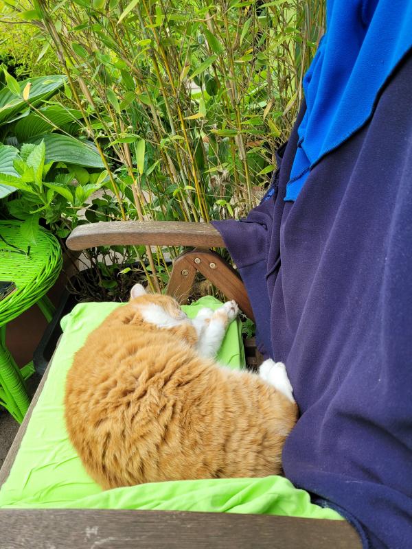 Endlich hab ich das weiche Kissen und den Stuhl mit der besten Aussicht erobert.