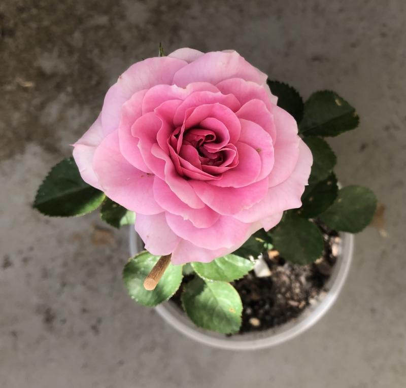 Aus einer Selbstung von ´Rose de la Maître-École´, einer Gallica -Rose von 1831, erhielt ich diesen Sämling mit einer ansprechenden Blütenform.