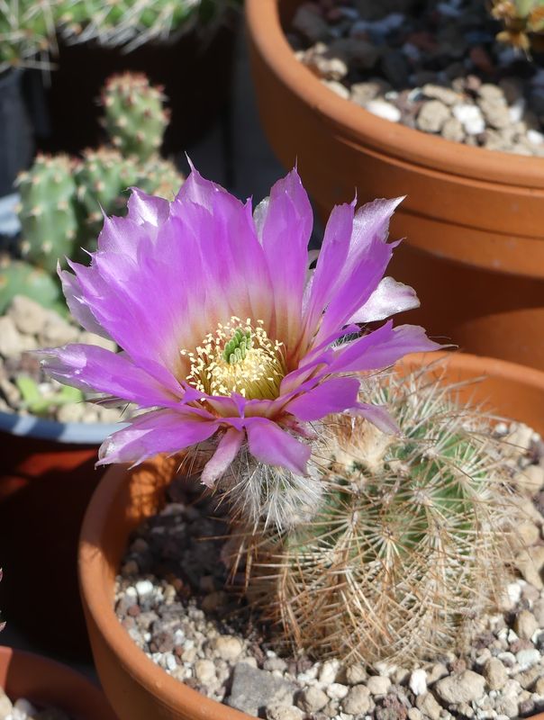 Manchmal staunt man über das Verhältnis von Blüten- zu Pflanzengröße. Echinocereus reichenbachii ssp baileyi