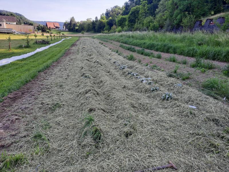 Was noch spannend ist: der aktuelle Mulch Bedarf liegt bei ca. 50 aren Wiese , also eine halbe Hektare. Das hat uns sehr erstaunt wie hoch der Verbrauch ist.... zusätzlich nutzen wir vorallem für Salate, Zwiebeln und Knoblauch Strohmulch.