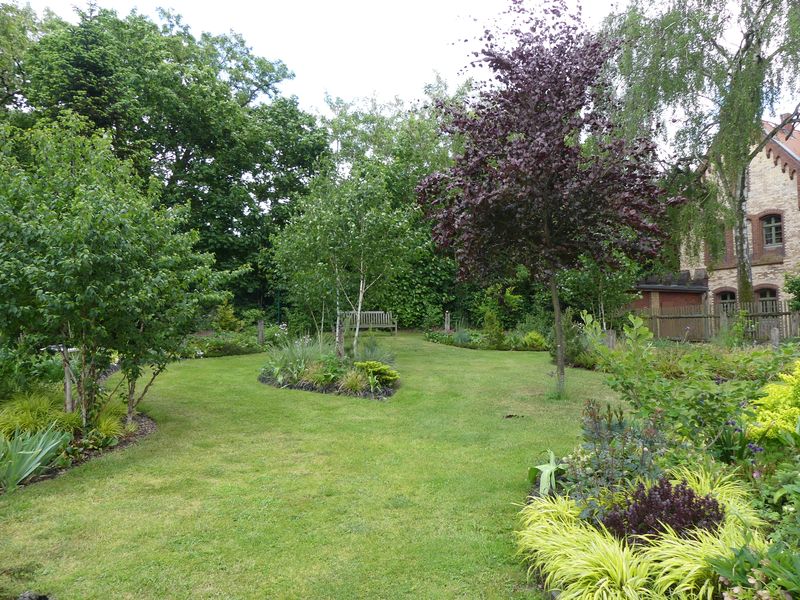 Im Moment knallt's ganz schön. :) Zumindest im Mittelbeet. Im Herbst musste ich hier Persicaria wallichii roden, der auf einer Fläche mit gut 3 m Durchmesser alles platt gemacht hatte. :P Von der anderen Seite sieht man das zum Glück nicht. Hier fallen nur die etwas zögerlich wachsenden Hakonechloa auf, die von einer Wühlmaus unterwandert wurden.