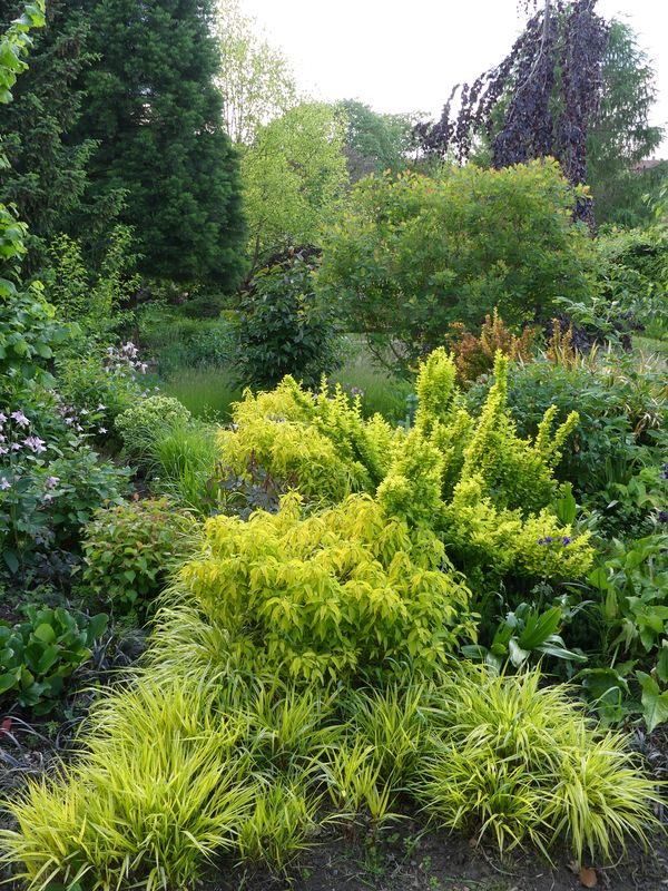 Cornus sericea 'Kelsey Gold' und Berberis t. 'Golden Torch' hauen farblich im Austriebsgelb schon ordentlich rein. :)