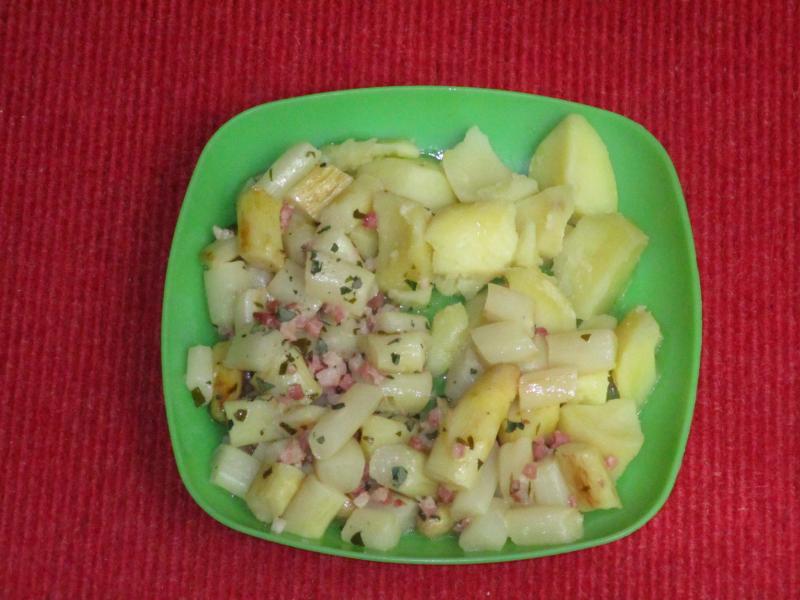 Heute gab es Salzkartoffeln mit Spargel (in der Pfanne gebraten mit Oregano und Schinkenwürfelchen).