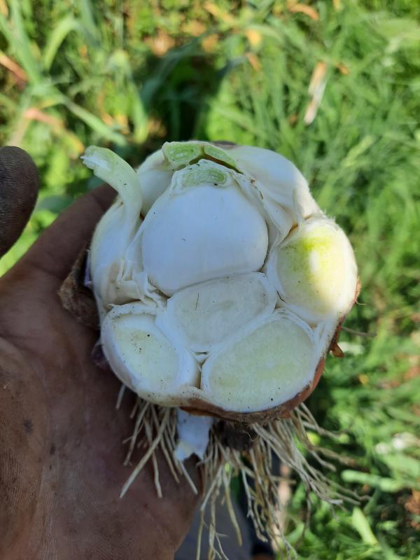 Auch der Knoblauch wird bereits geerntet, früher als gedacht. Aber die Qualität stimmt.
