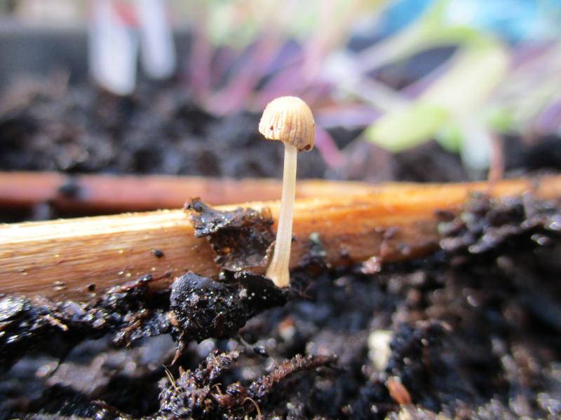 Im Anzuchtkistel - der "Balken" ist ein Essstäbchen.