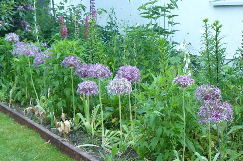 Die hohen Lauchsorten mit kugeligen Fruchtständen sind noch lange dekorativ. Mindestens bei 'Purple Sensation' habe ich den Eindruck, dass dabei nicht einmal die Blühkraft im Folgejahr leidet. Aber das habe ich erst über ein, zwei Jahre beobachtet.