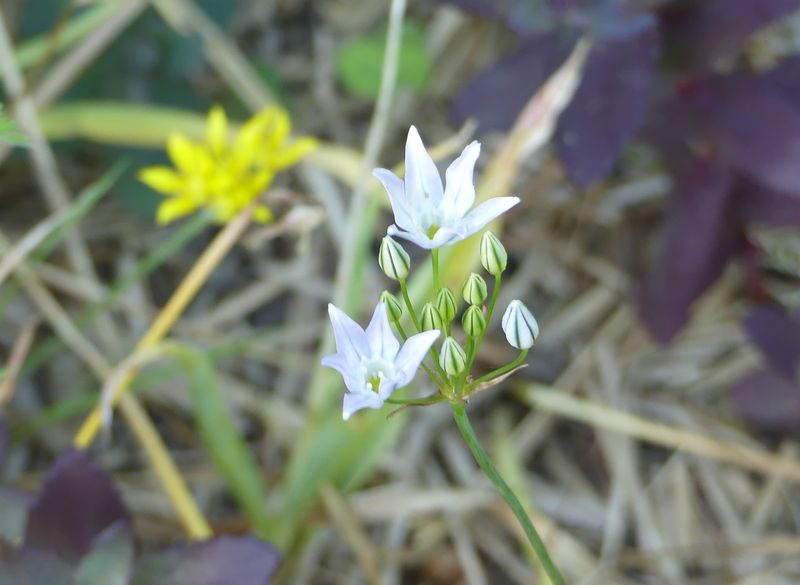 Ich hoffe, die Frage ist bei Allium richtig. Was kann das sein? Weder bewusst gepflanzt, noch bisher im Garten gesehen. Die hellblaue Blüte fiel mir im Heckenbeet auf, das ich im August neu bepflanzt habe.