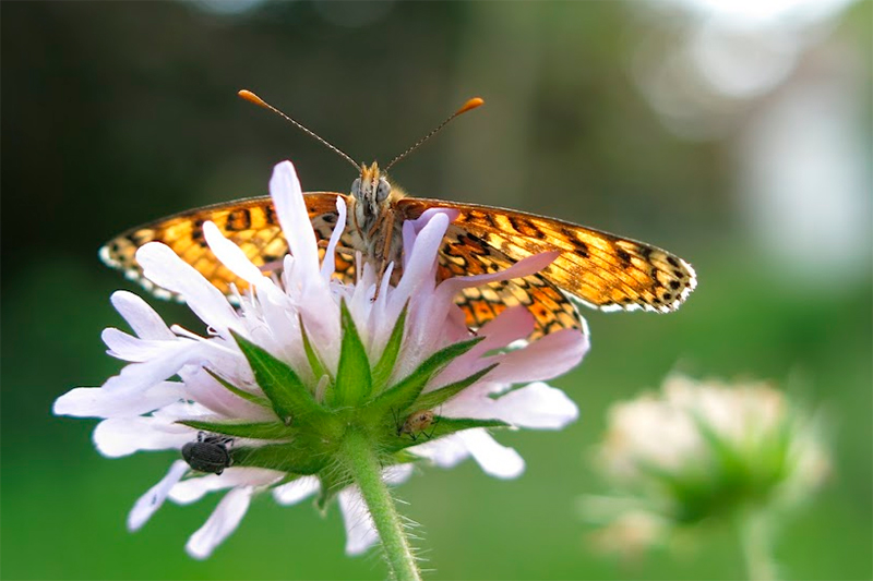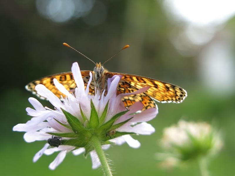 Hier gab es gestern einen Scheckenfalter, Melitaea cinxia, der Wegerich-Scheckenfalter, Rote Liste 2 - stark gefährdet.