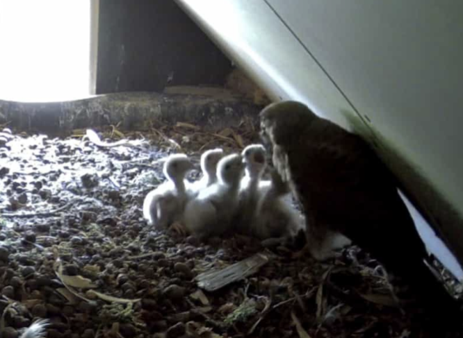 Hier ein aktuelles Foto aus dem Nest der Turmfalken im Dachboden bei meinem Nachbarn...