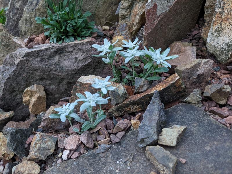Edelweiß will bei mir überhaupt nicht. Ich vermute, obwohl es nicht so aussieht, dass es nicht genügend resistent gegen Trockenheit ist. Ich habe jetzt aufgegeben welche anzusiedeln.