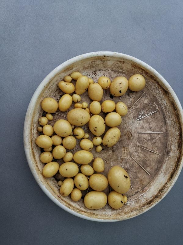 Eine erste "Testernte" Kartoffeln (Ende Februar - Anfang März im Kübel gesetzt).