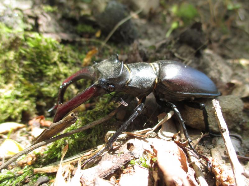 Gestern bin ich auf ein sehr hübsches Exemplar am Boden getroffen. Der Kerl erschien mir sehr jung, er glänzte und die Kieferzangen waren mahagonierot.