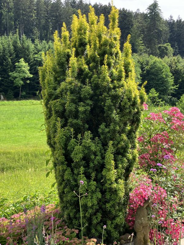 Dieser Eibensämling fällt mir mit seinem gelben Austrieb nun schon seit ein paar Jahren auf. Vielleicht sollte ich ihm doch einen besseren Platz spendieren.