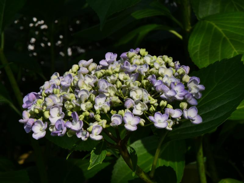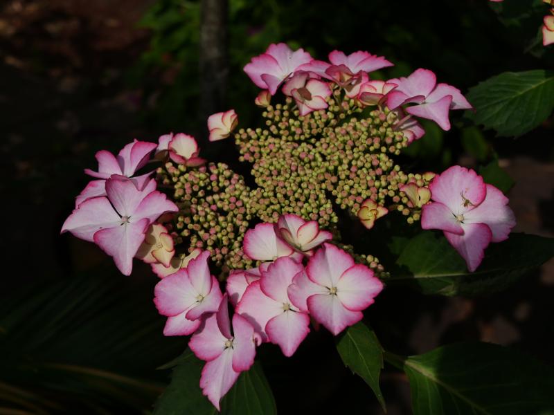 Hier blühen schon einige Hortensien. Zum Beispiel diese, deren Namen ich vergessen habe >:(