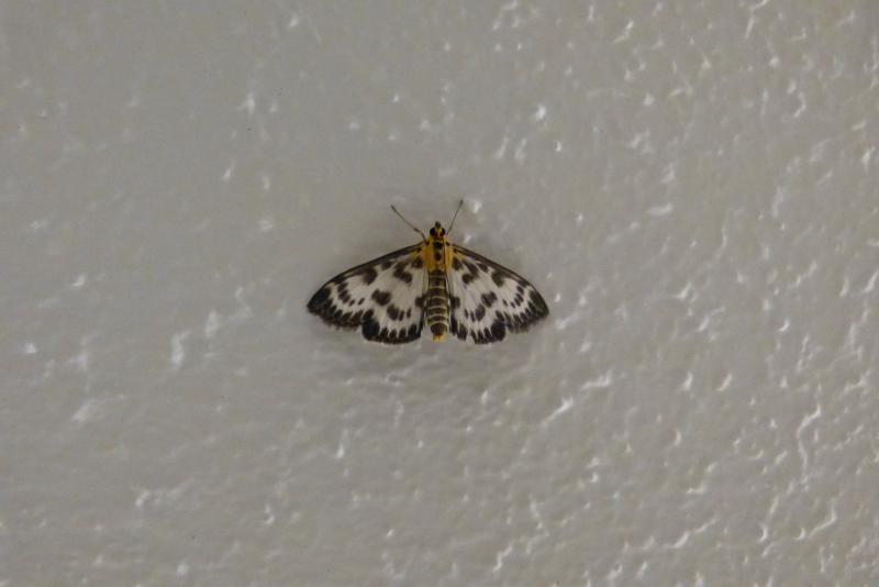 Dieser Falter mit einer Flügelweite von 20-25 mm befand sich bei uns im Haus an der Decke. Weiß jemand ihn einzuordnen?