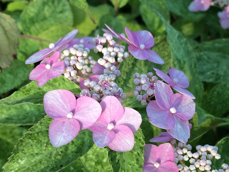 Hier blühen schon einige Hortensien. Zum Beispiel diese, deren Namen ich vergessen habe >:(