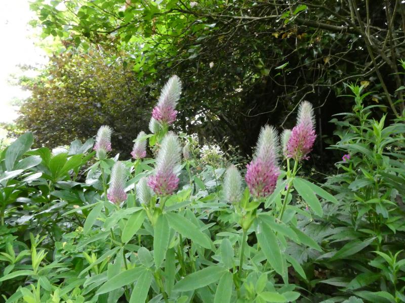 Einen ganz anderen Standort bevorzugt Trifolium rubens, dem es in einer der heißesten Ecken des Gartens zusammen mit Geranium Philippe Vapelle und Euphorbia polychoma Midas gefällt.