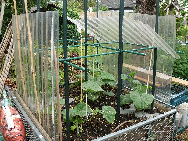 Dieses Jahr wurde am 22. Mai Hagel angekündigt und das Gurkenbeet mit zusätzlichen Trapezprofilplatten