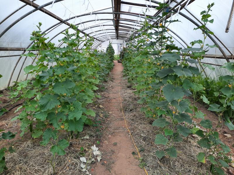 Die Gurken wachsen wie Wild, das erste Jahr das wir sie an einer Schnur ziehen. Hoffentlich können sie dann auch abgelassen werden.