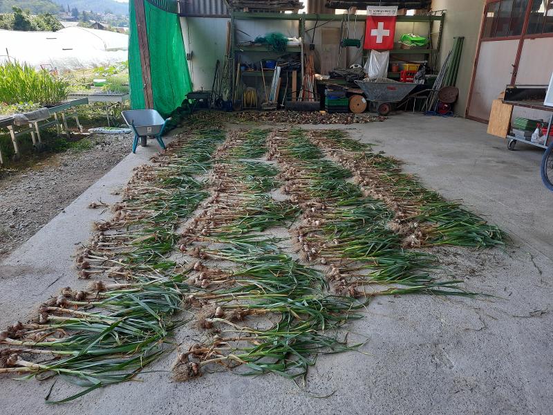 Auch der Knoblauch wird bereits geerntet, früher als gedacht. Aber die Qualität stimmt.