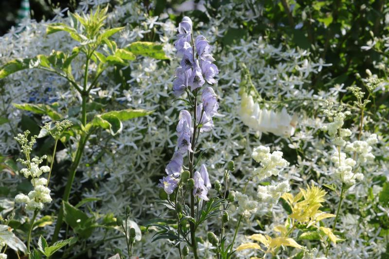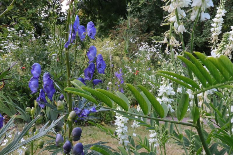 Mein frühester blauer Eisenhut blüht zusammen mit Galega x hartlandii ´Alba´.
