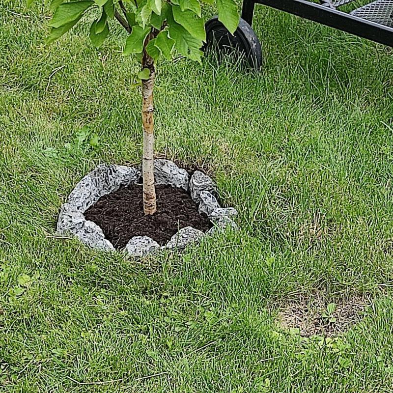 Danke für die Info. Der Rasen wurde jetzt ca. 40 cm im Durchmesser weg genommen, reicht das ? und kann man da so Steine ruhig drum herum legen ?