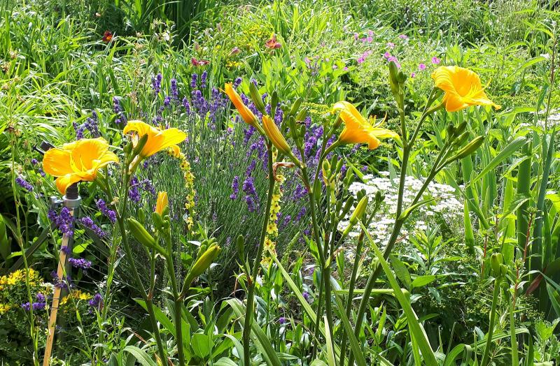 Gleich daneben steht ein großer Horst von "Red Suspenders". Eine tolle Taglilie, blüht zuverlässig jedes Jahr.