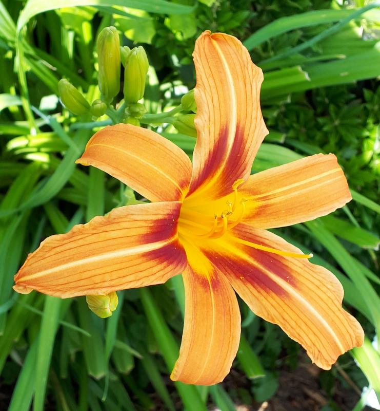Photo habe ich vergessen zu machen, aber mich extrem ueber die Erstlingsblueten meiner 'Burning Daylight' gefreut: das lodernde Orange knallt so richtig rein vor dem ganzen ueppigen Junigruen im Garten. Schoen, wie durchgefaerbt gelborange der ganze Schlund ist.