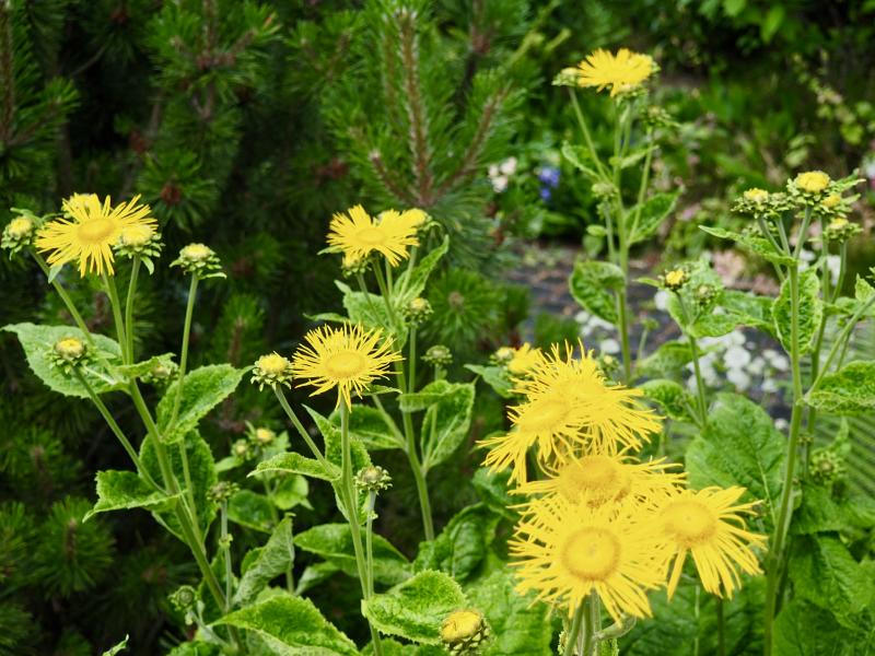 gerade blüht so viel... die Telekie zum Beispiel... im Vorgarten steht sie vor einer Bergkiefer. Das gibt einen dekorativen Kontrast.