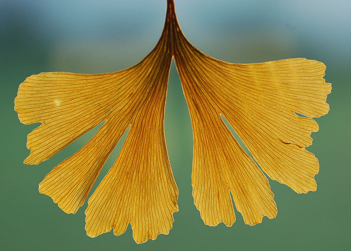 Der Gingko leuchtet noch wunderbar gelb und zeigt seine schöne Blattstruktur.