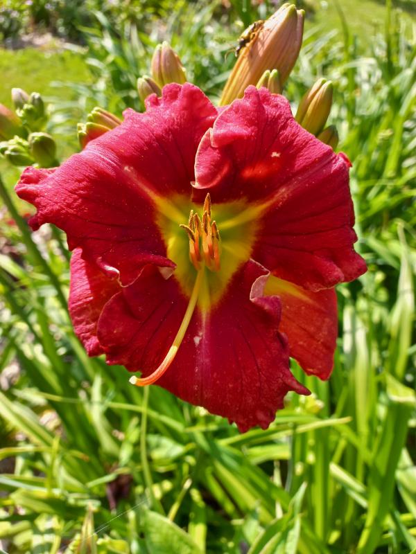 Die erste, die hier bei mir blüht. Steht hier oben noch geschützt auf dem Balkon im Kübel, wird aber im Herbst in den Garten gesetzt. Zur Zeit ist das nur ein Fächer, ich hoffe, das sie dann nächstes Jahr schon Kindel bildet und damit einen größeren Horst.