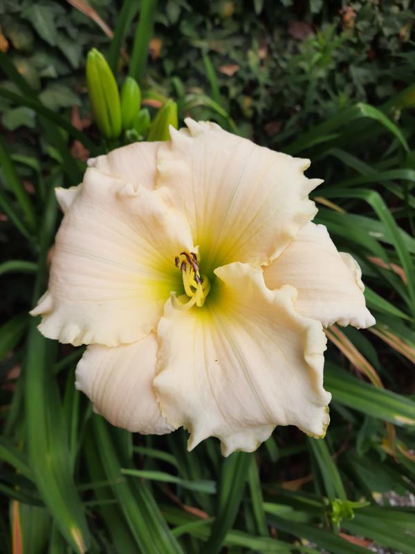 Hier nochmal von der Seite. Ich liebe es, wenn sie die Blütenblätter schön symmetrisch leicht nach hinten drehen. Im Hintergrund steht "Green Flutter", eine Erinnerung an Jutta.