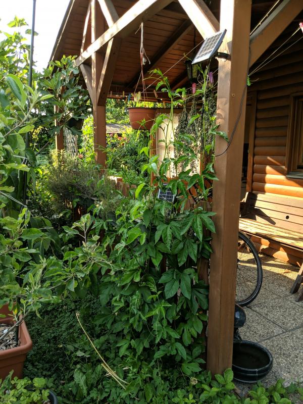 Hier ist ein Neuzugang im Garten. Eine angeblich winterharte Passiflora edulis Frederick. Bin Mal gespannt wie sie sich macht