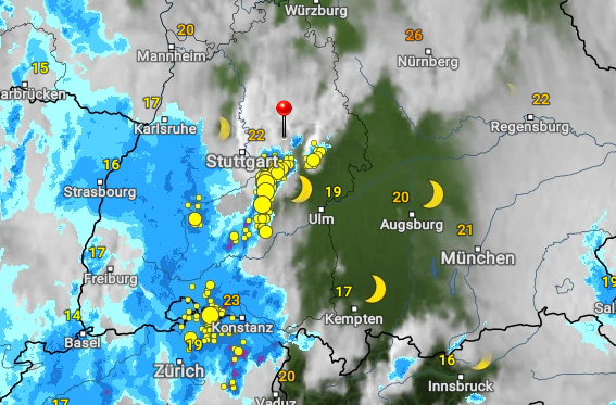 Der Temperatursturz ging hier von 31° auf aktuell 23°C.
