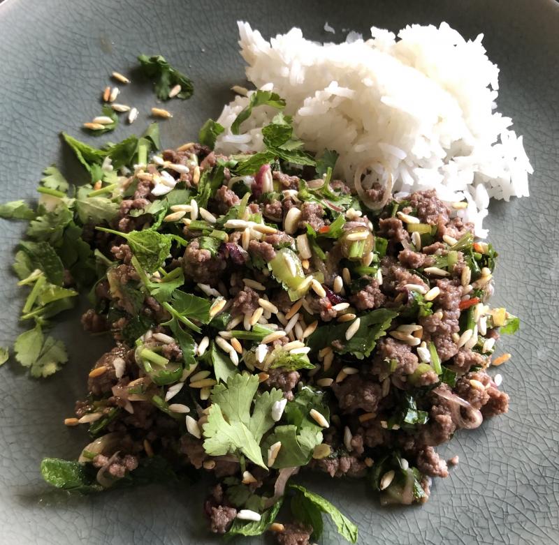 Heute gab es Larb nach diesem Rezept Es hat mein Fernweh etwas gestillt. :D