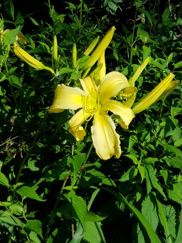 Joan Senior, in der Beschreibung als "weiss" tituliert, na ja, auch mit viel Phantasie sehe ich kein weiss, Schade, schon wieder gelb. Irgendwie ist bei mir die Gelbsucht im Garten. Muss ich nächstes Jahr unbedingt ändern.