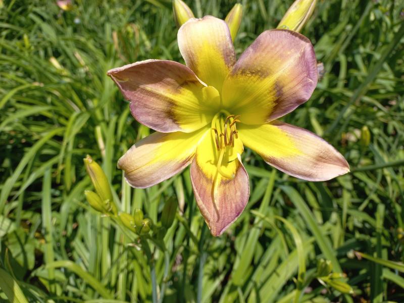 ... diese hier ebenfalls Uralte schätze ich sehr, da sie Knospen nachschiebt und bis auf den orangegelben Schlund eigentlich ideal ist. Es ist nicht die H. fulva. Beim Namen vertue ich mich immer ...