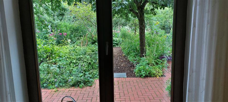 Im Haus draußen sein: Die Tür in den Garten; gleichzeitig der Blick vom Lesesessel.