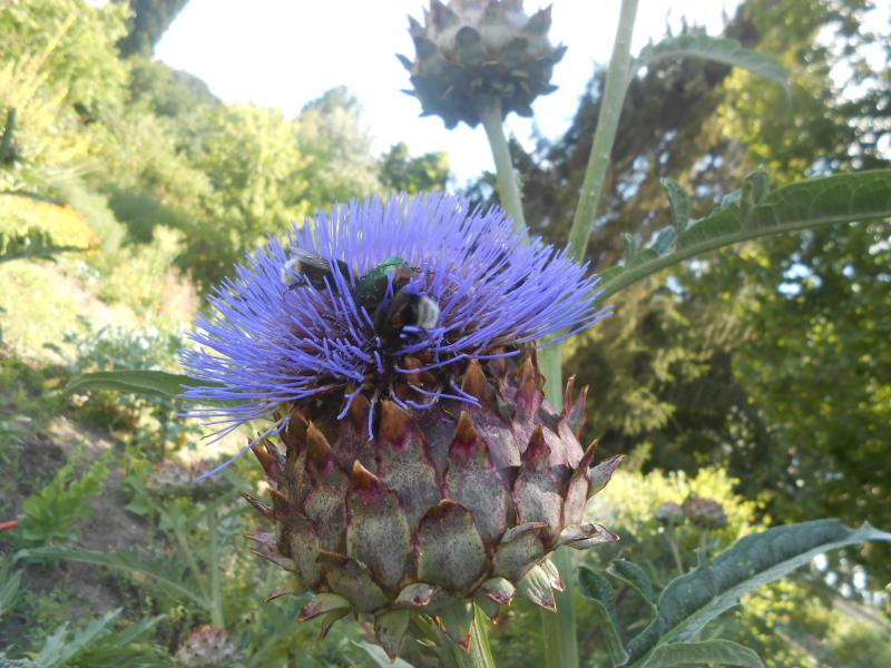 Es herrscht jetzt Hochbetrieb an den letzten Blüten der Cephalaria Gigantea.