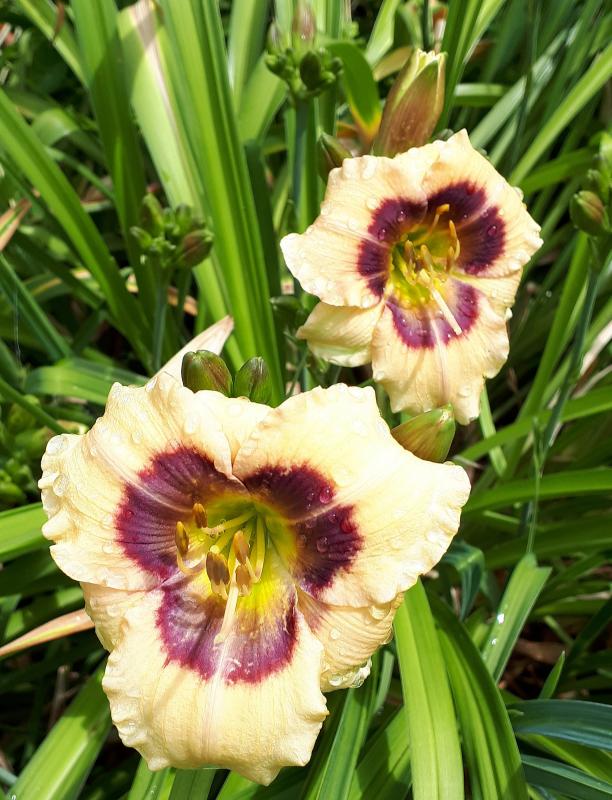 Auch der 'Berleyer Nachtgesang' (n. reg.) war mir trotz kleinem Schönheitsfehler ein Foto wert. Ich mag den, wie er so über den umlagernden fluffigen Blütenwolken von Nepeta 'Bramdean' schwebt (aber nächstes Jahr kriegt die Minze trotzdem einen Reifen drum...)