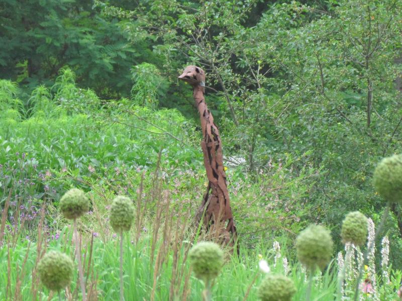 Das Gelände ist nicht mit Deko überfrachtet, man kommt aber auch nicht drumrum. Wenig anfangen kann ich mit Scherenschnitten aus Cortenstahl, aber das ist einfach Geschmackssache.