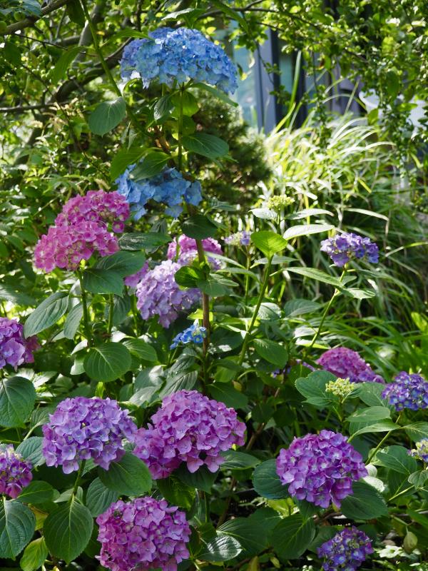 Trebah Silver wird immer blauer, konnte sich einige Jahre gar nicht entscheiden, aber jetzt überwiegt das Silberblau, obwohl Esveld behauptet der Name käme wegen eines silbrigen Glanzes auf den Blüten. Das ist mein Liebling hier, auch wenn die Endless Summer mit ihrer blauen Blütenwolke alle Blicke auf sich zieht.