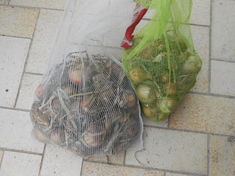 Jede Menge Zwiebeln, etwas Knoblauch, die ersten beiden Schlangengurken: