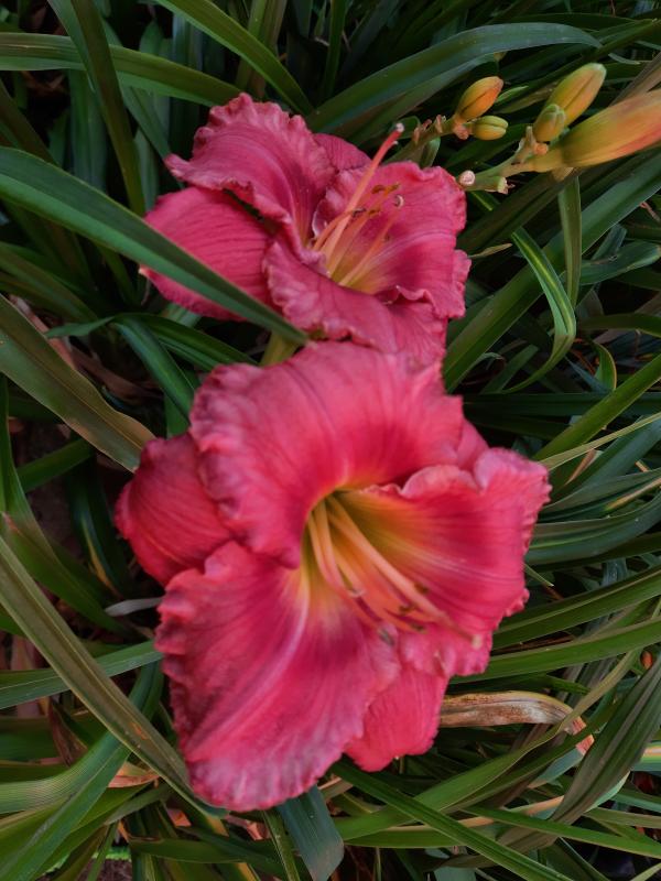 ... und 'Berlin Vesp', steht ziemlich versteckt hinter den in diesem Jahr äusserst üppigen Montbretien. Die sind Sichtschutz tauglich.