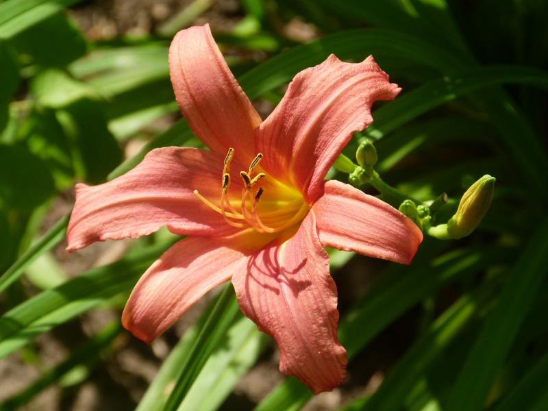 Und die Blüte von nahem. Ich empfinde die Farbe etwas dunkler als auf dem Bild, da kam gerade die Sonne raus. Sie wird etwas 50 cm hoch und ist definitiv dunkler als die H. fulva. Falls jemandem zu ihr etwas einfällt, würde ich mich freuen.