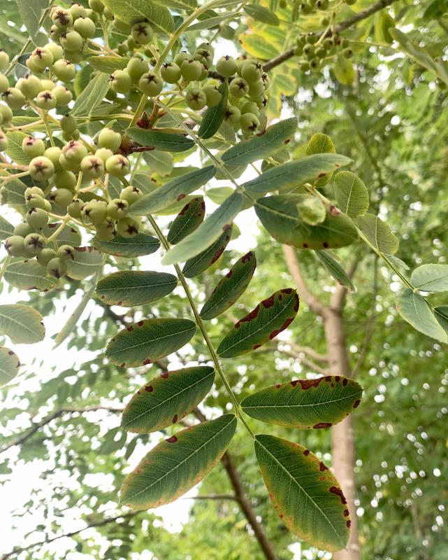 Wir haben hier das bisher trockenste Jahr überhaupt (seit ich vor 25 Jahren den Garten übernommen habe) und so langsam zeigen sich die Spuren überall. Der Garten ist nicht am Haus und hat keinen Wasseranschluss, und Regenwasser gibt es seit Monaten fast keins… täglich schleppe ich deshalb 250 Liter Wasser in Kanistern und Gießkannen die 100 m in den Garten, mehr ist einfach nicht machbar. ABER: Wir haben hier das absolut härteste Wasser, 21 Grad dH, und einige Pflanzen mögen das im diesjährigen Dauerzustand gar nicht. Kann das auch die Ursache für das ungesund aussehende Laub des Sorbus (hupehensis, meine ich) sein? Es begann vor einer Woche und wird nun täglich heftiger. Ich habe zu wenig Ahnung, um den Mangel, der vermutlich vorliegt, anhand des Aussehens der Blätter bestimmen zu können. Der Baum steht in Lehmboden, ist 20 Jahre alt, und hat noch nie zuvor solche gelben Blätter gehabt. Allerdings hat er auch noch nie zuvor über Monate mit fast ausschließlich Leitungswasser überleben müssen, und davon reichlich wenig. Was kann ich tun, um da gegenzusteuern?