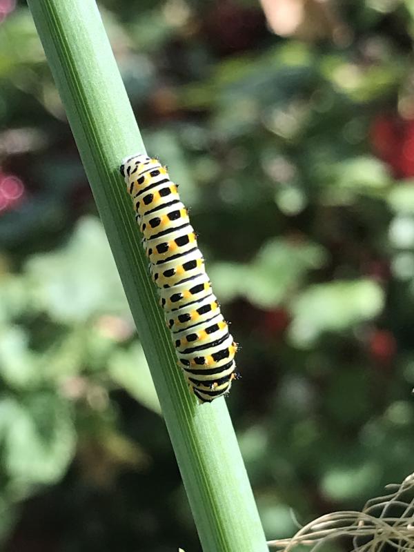 Auf dem ausgewachsenen Knollenfenchel vom letzten Jahr hab ich gestern drei Schwalbenschwanzraupen entdeckt.