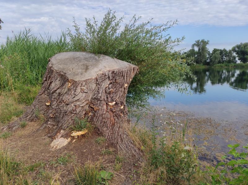 eine riesige Weide, abgesägt und mit neuem Austrieb.