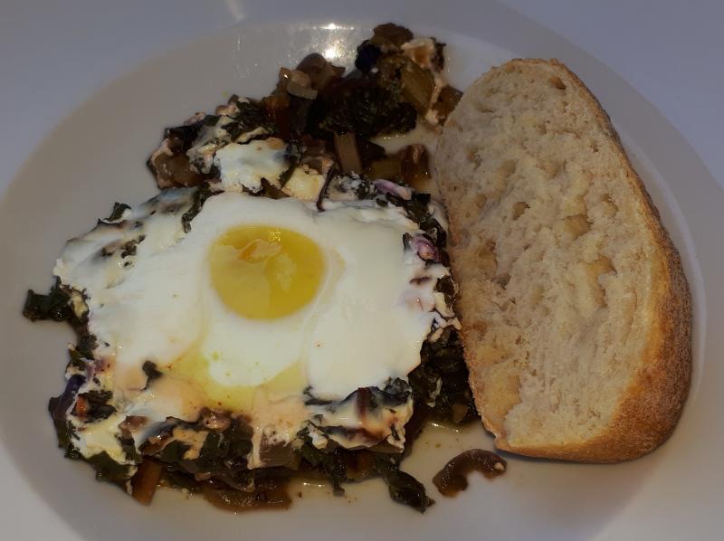 Zucchini mit Tofu geschmort, Pellkartoffeln, gemischter Salat mit erstem eigenen Frisée