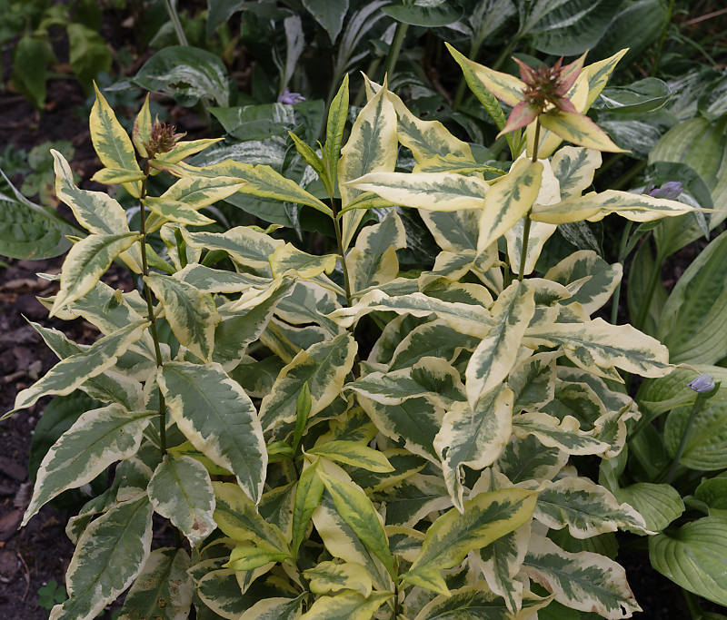 Fällt auch ohne Blüte auf: 'Warsaw Sunrise'.